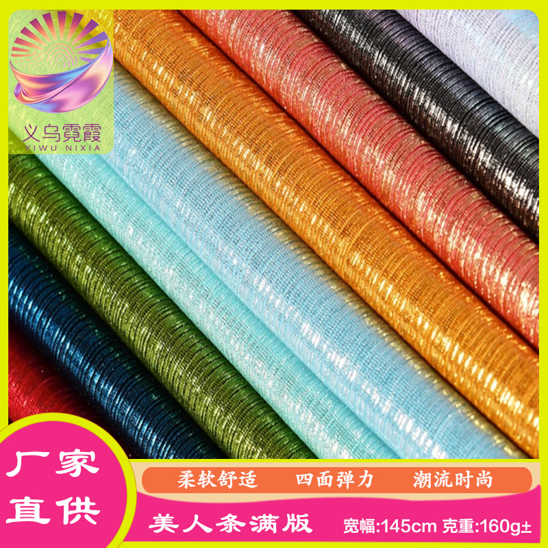 美人条满版烫金面料舞台服装紧身衣抽条坑条弹力条纹褶皱烫金布料