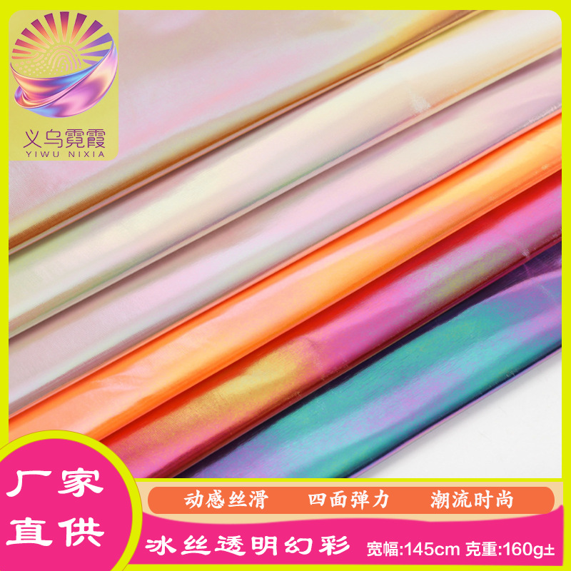 幻彩镭射烫金布料弹力冰丝面料渐变彩色舞台演出服装背景装饰布
