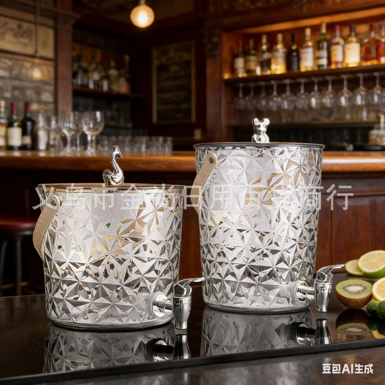 クロスボーダー透明冷水筒、蛇口付きフルーツティーバケツ、ジュース飲料冷水筒、大容量家庭用飲料バケツ