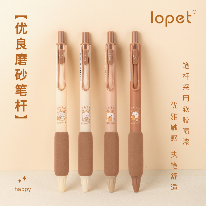 楽派1355龍BUFFコーヒー色ペンST先押し中性ペンかわいいブックマーク文房具セットギフトペン