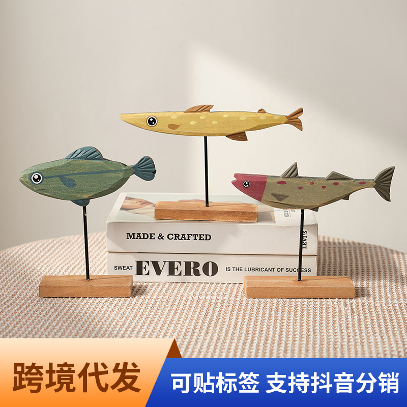 北欧の手作りのかわいい魚の置物テレビの棚のデスクトップの小さい魚の木製の装飾品の工芸品の漫画