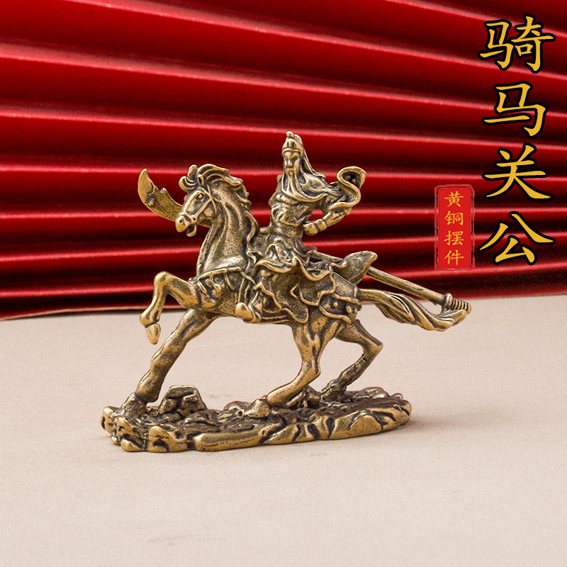 純粋な黄銅の馬に乗ると関公古は飾っています。