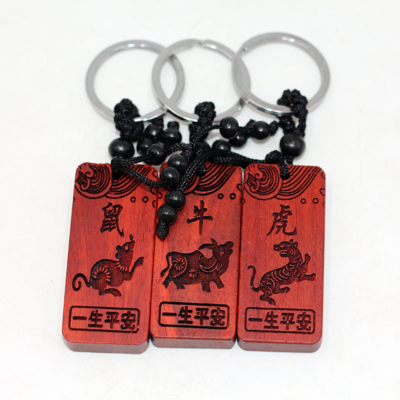 赤木両面彫刻十二生肖の鍵は木製の四角い生肖のペンダントを掛けて、両親の友達にプレゼントします。