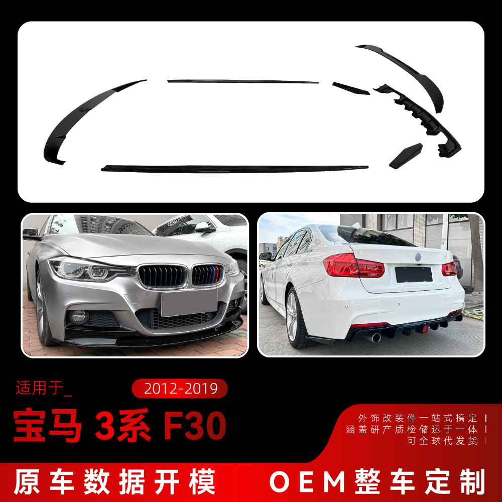 适用2013-2019宝马bmw3系f30前唇侧裙带灯尾唇尾翼扰流板改装件
