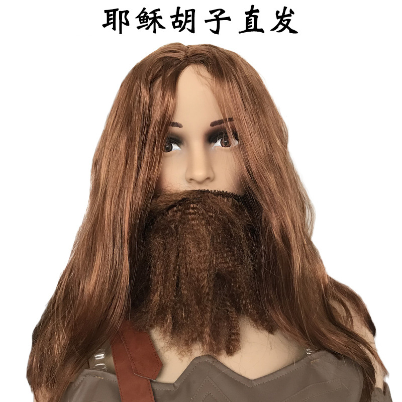 十字架,太い十字架,厚い銀の十字架,ひげ+ウィッグストレートヘア,グレーと白のひげ + ウィッグ,ひげ+ウィッグ巻き毛