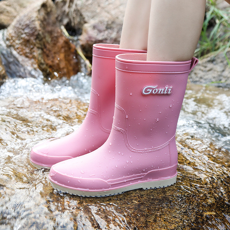 雨靴の女性の中筒ファッションの外に防水雨靴を履いています。