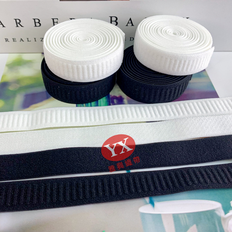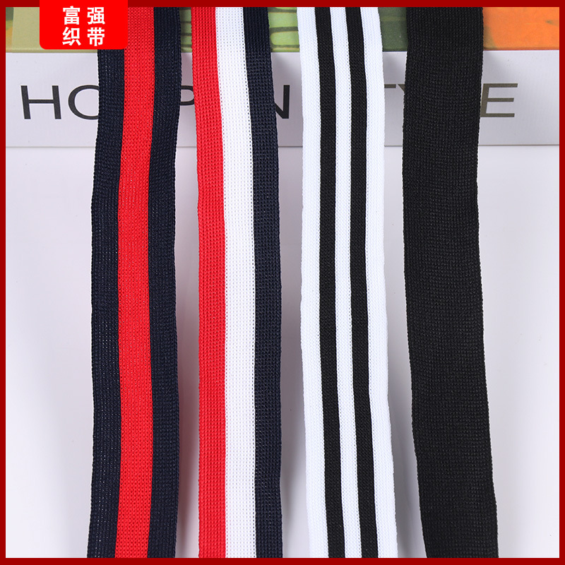 150D ポリエステル黒と白のニットベルト横方向に伸縮性のあるウェビングアクセサリー服とパンツの幅広サイドストリップウェビング
