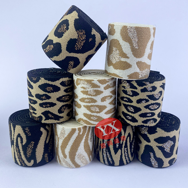 4cm金銀糸弾性帯欧米豹紋かつらジャカードナイロン弾性帯シマウマ紋ズボンベルト卸売り