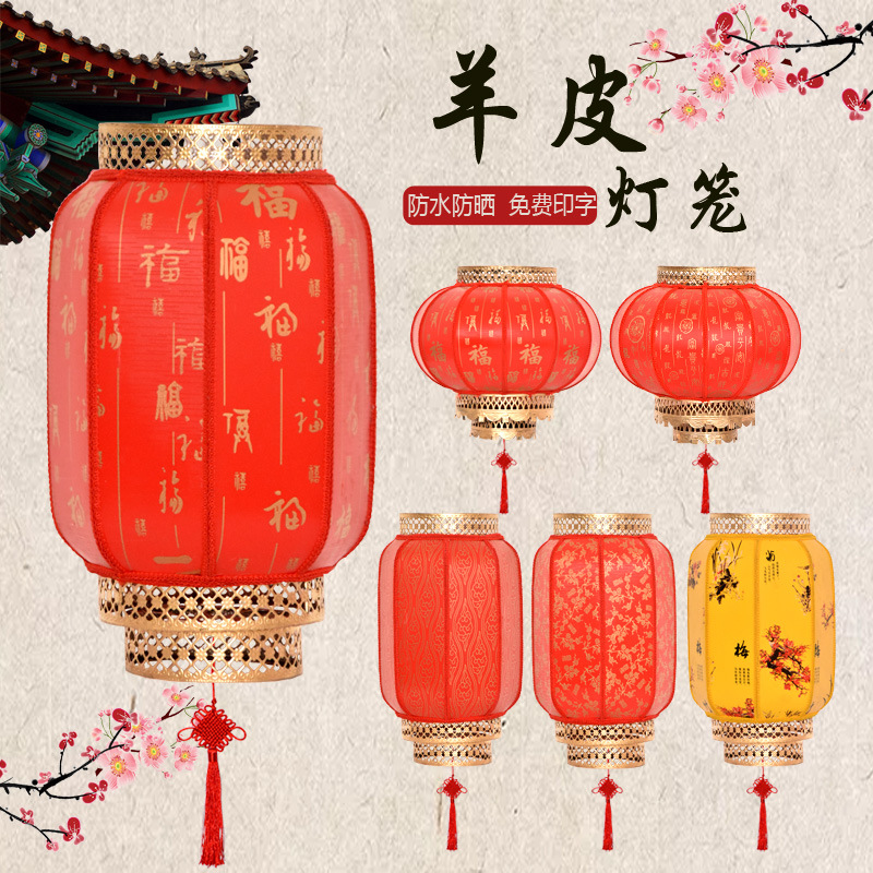羊皮提灯屋外防水広告印字旧正月ベランダの玄関装飾お祝い大紅円形宮灯