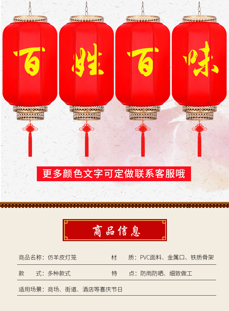 直販模造羊皮提灯新年祝祭用大赤防水広告中国風丸型宮灯招財手工芸品