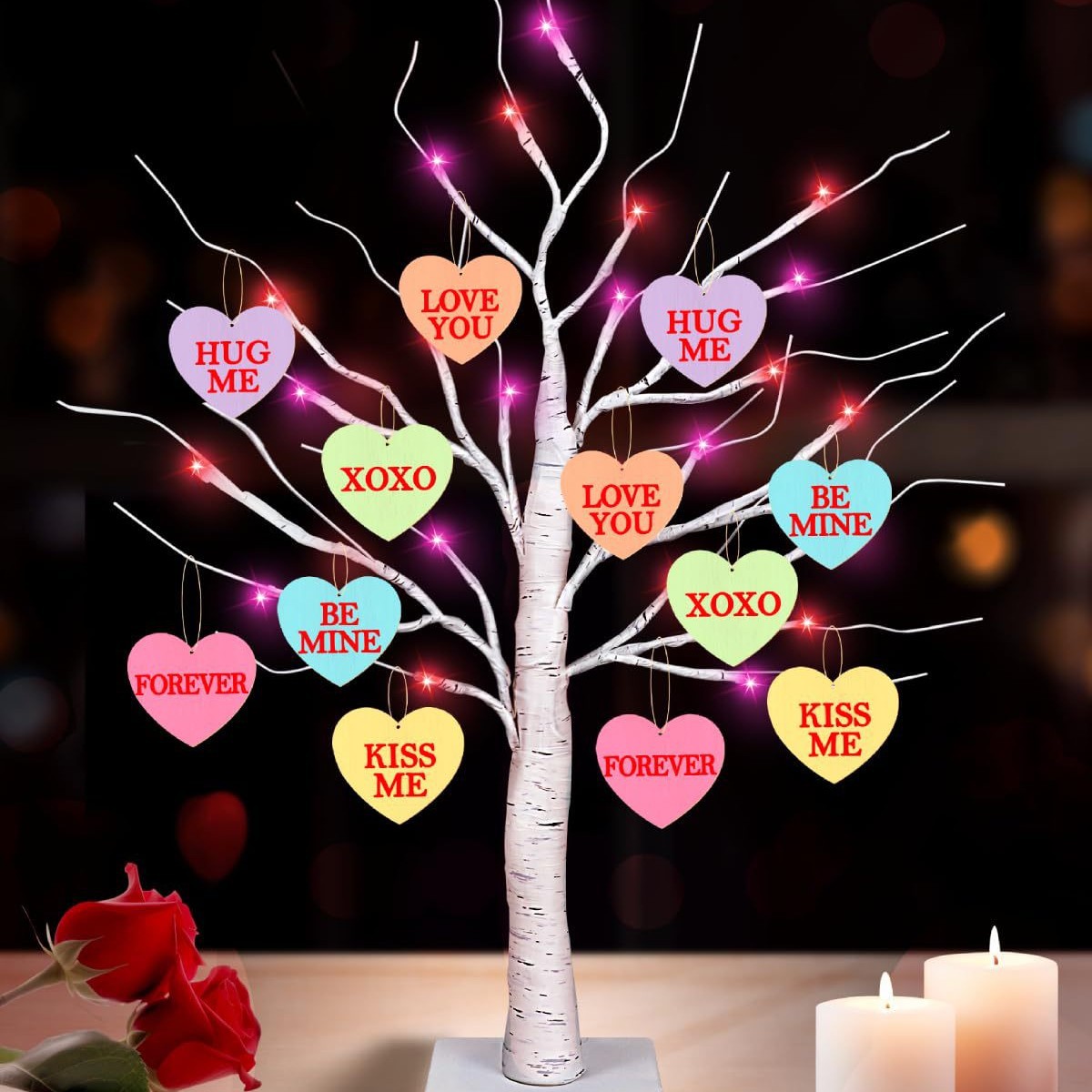 クロスボーダー LED バレンタインデー カラフルな愛の光付き白樺の木パーティー フェスティバルの雰囲気の形のツリー ライト プロポーズ オーナメント