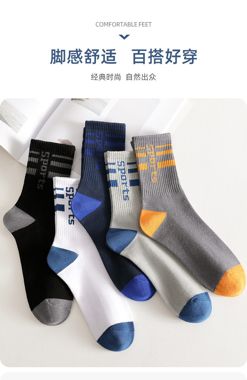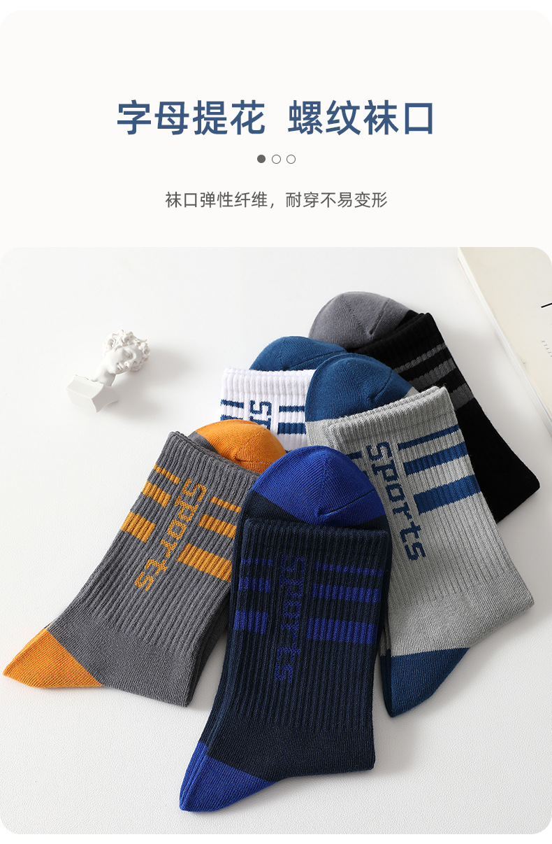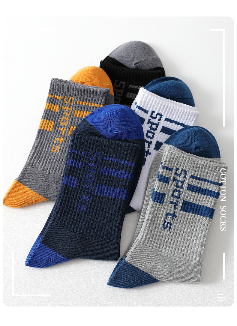 諸暨靴下業社 メンズコーマ綿スポーツソックス 春夏用ロングソックス 通気性・吸汗性・防臭性のあるアルファベット柄ミッドカーフソックス