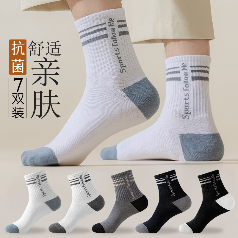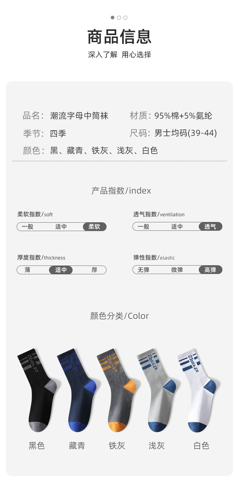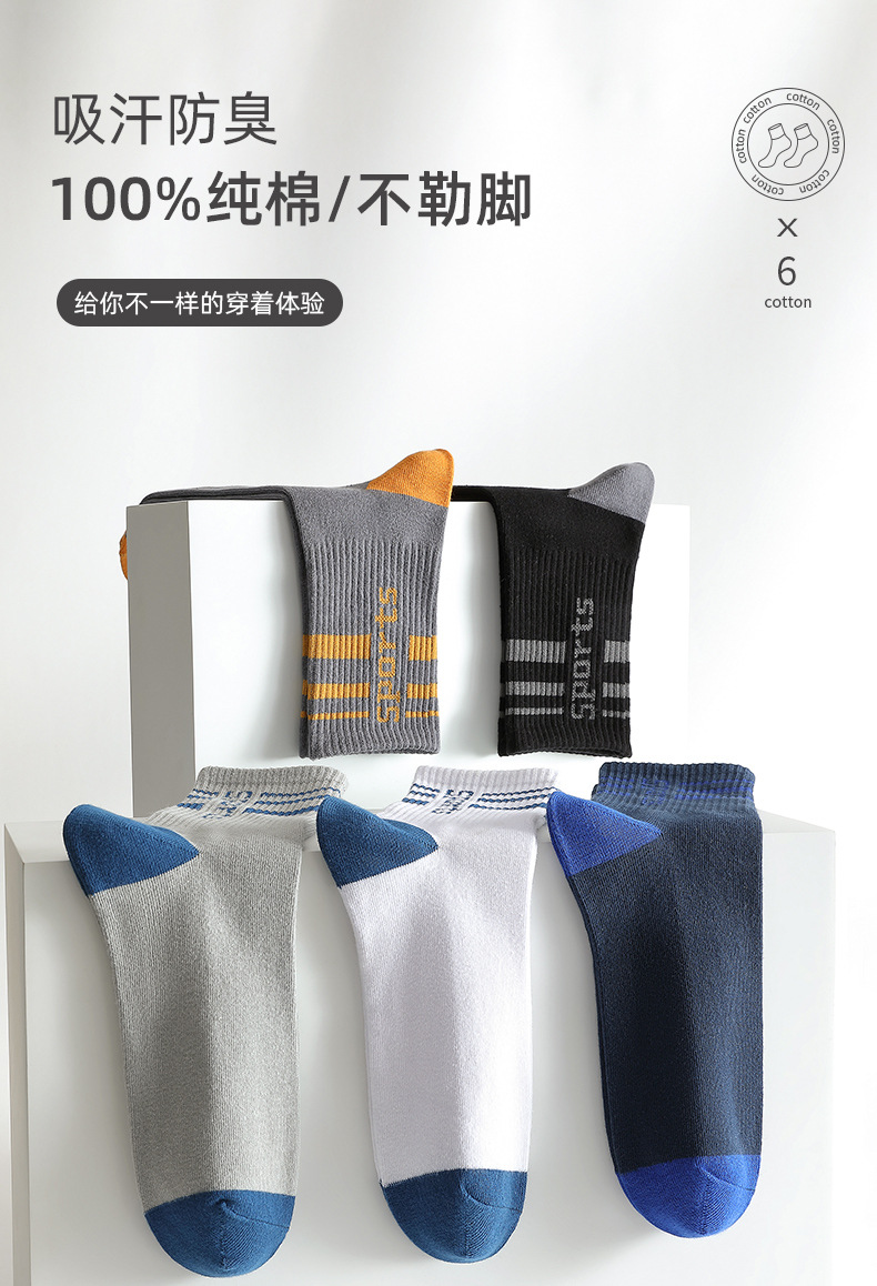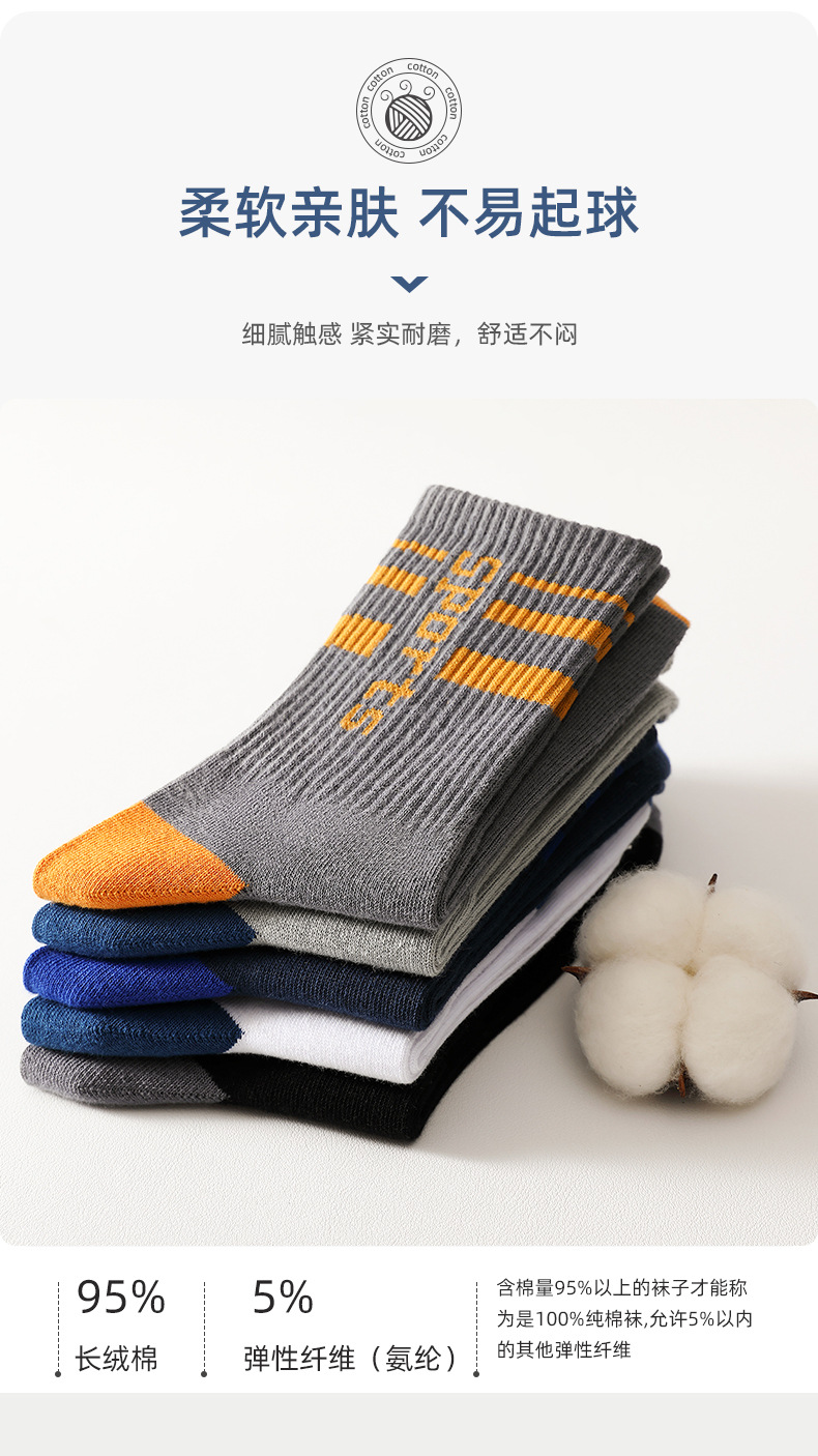 諸暨靴下業社 メンズコーマ綿スポーツソックス 春夏用ロングソックス 通気性・吸汗性・防臭性のあるアルファベット柄ミッドカーフソックス