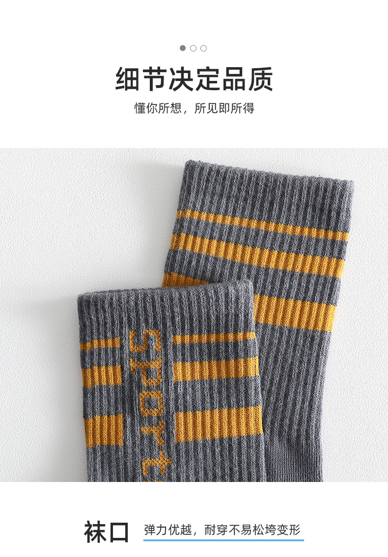 メンズ吸汗綿防臭ミッドカーフソックス春夏綿ソックスシームレスストライプメンズロングソックス二本針卸売
