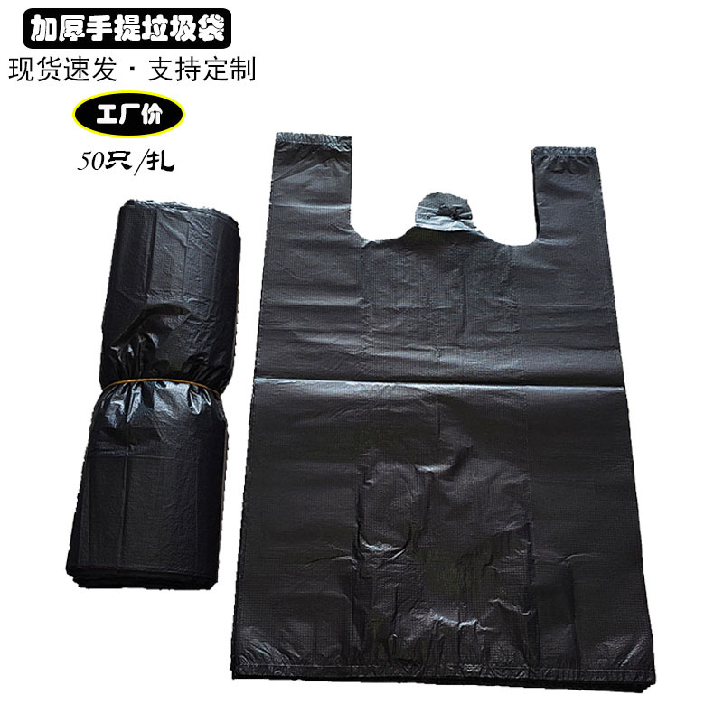 ゴミ袋家庭用厚手中大サイズ黒色手提げベストプルオーバーバッグ卸売り使い捨てビニール袋キッチン