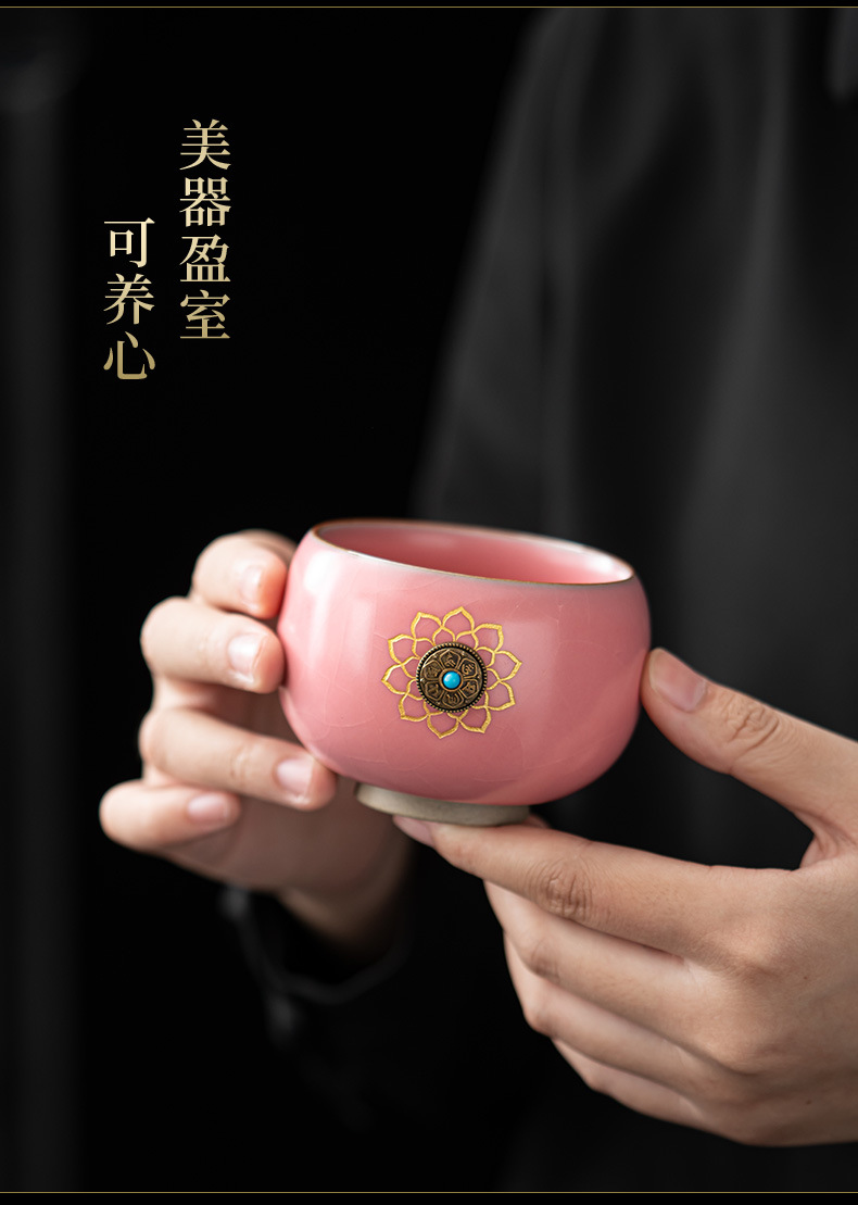 粉はサンザシの赤い陶磁器のお茶のコップの大きいサイズの個人の杯を引いて銀の女性の工夫の主人の杯を描いてお茶の杯をプレゼントします。