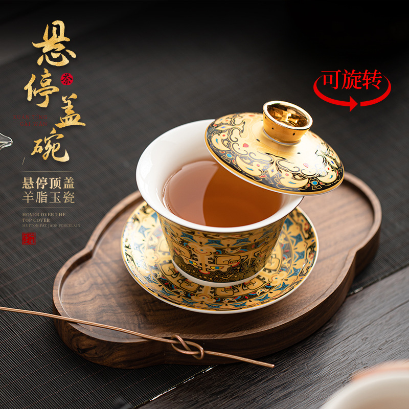 唐カードのホバーの蓋の工夫の茶道具の羊の脂の玉のお茶の杯の単一の茶碗の家庭用の3才のお茶の碗は蓋のセットがあります。