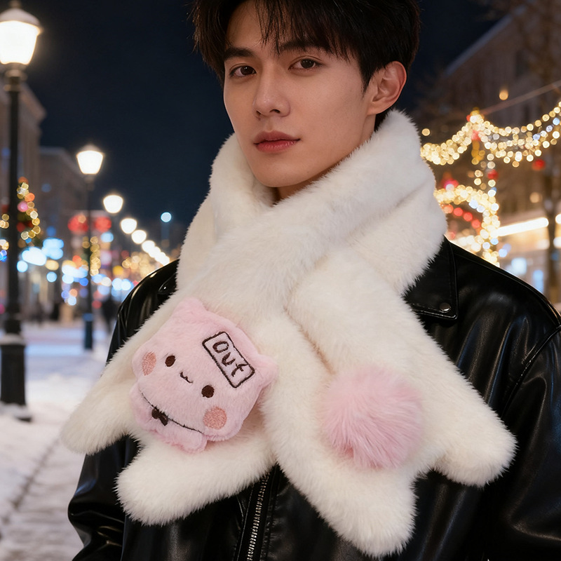 新款韩系冬季可爱毛绒围巾女保暖百搭卡通毛茸茸加厚保暖学生围脖