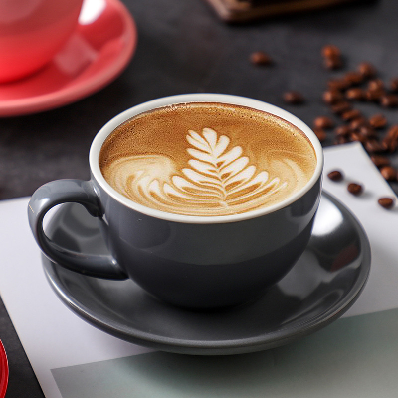 厚い陶磁器250mlカプチーノコーヒーカップセットカップ皿標準試合ラテカップ定ロゴ