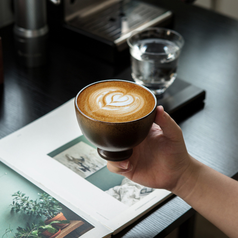日本のレトロな粗いセラミックハンドヘルドコーヒーカップラテアートラテ窯高足ダーティー大口カップ 250 ミリリットル