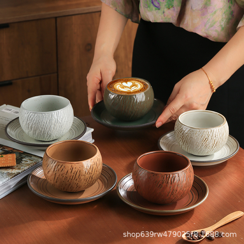 日本式レトロ粗陶コーヒーカップ皿エスプレッソカップ