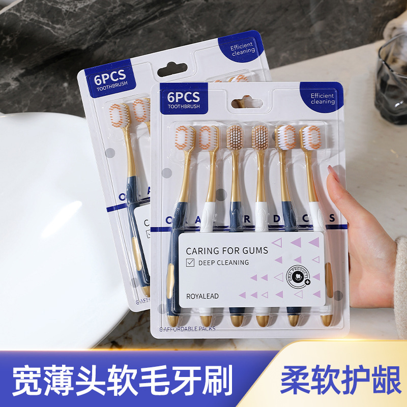 幅広ヘッド歯ブラシ6本セット 大人用 家庭用 女性カップル向け 柔らか毛 高級歯ブラシ メーカー卸売