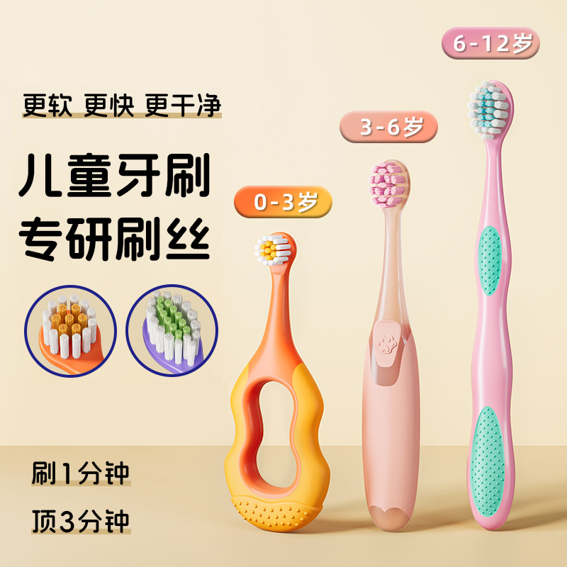 子供の柔らかい毛の歯ブラシの科学の3段の段階のマウスの0-1-2-6から9-12歳までの赤ちゃんの歯ブラシの卸売り