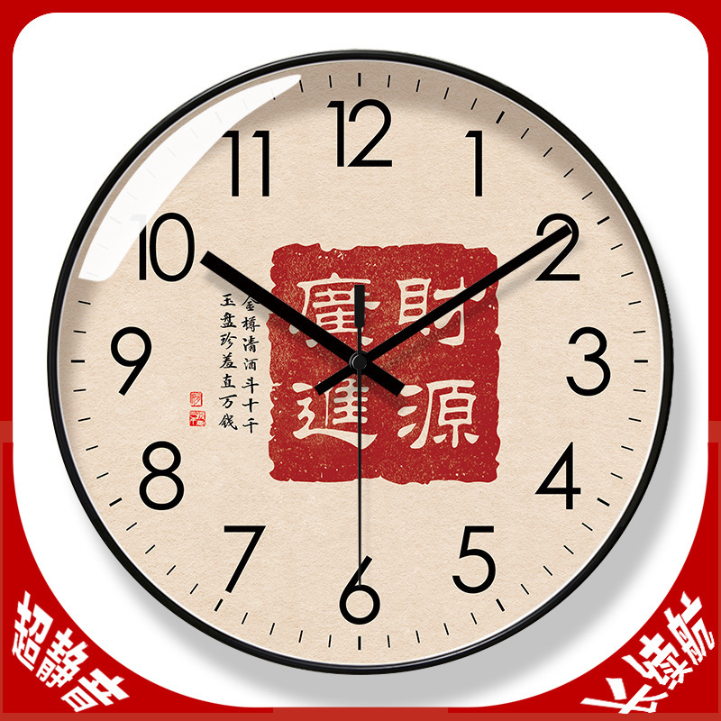 超静音6468掛け時計国風財源広進時計客間書道静音時計静音掃秒石英時計