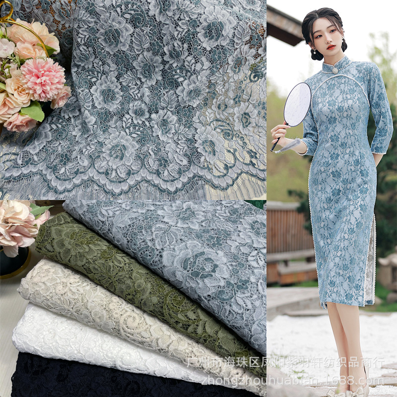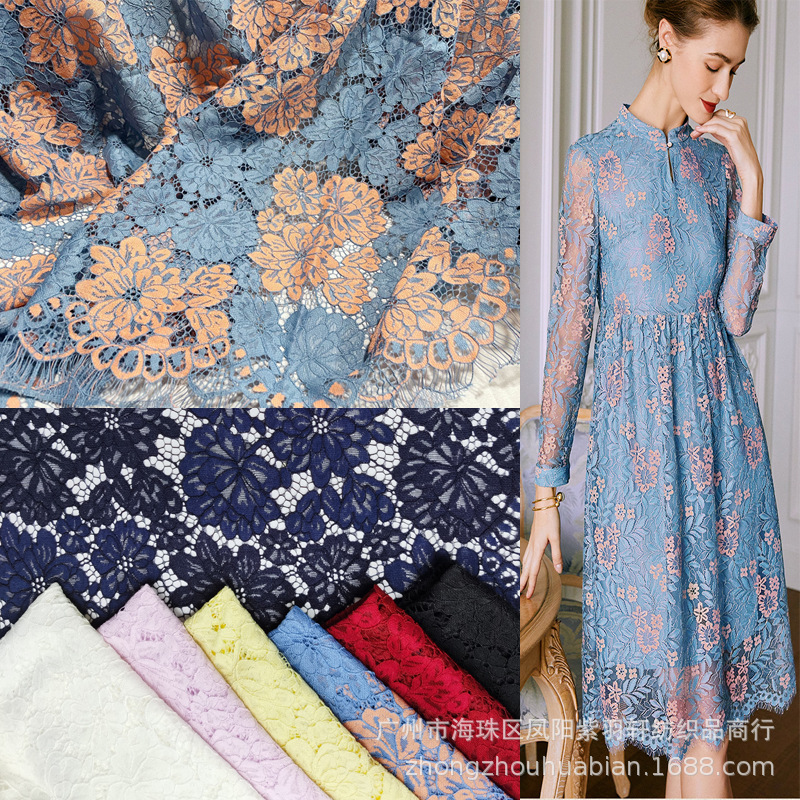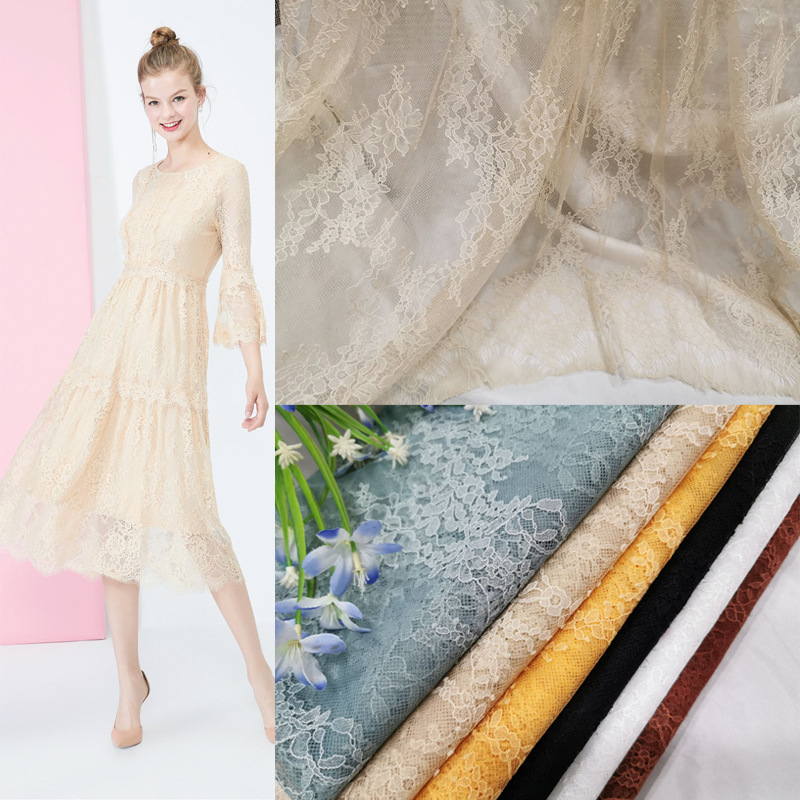 人気のまつげレース生地、ブロケード綿レース、ヨーロッパとアメリカのレーススカート、糸レース生地メーカー在庫