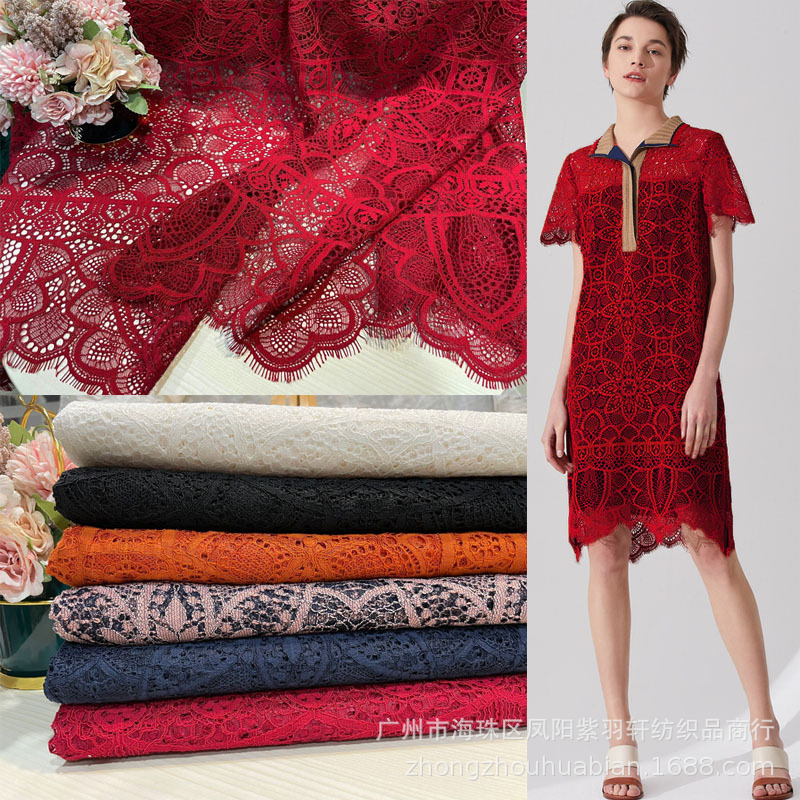 新型の軽くて赤いのは薄くてふわふわしています。半透明のレースの布地の服の布地は線のまつげを切ってレースの材料を決めます。
