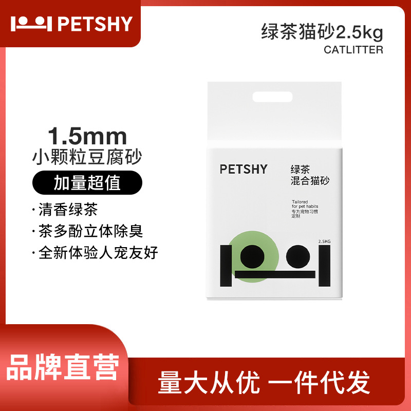 PETSHY豆腐猫砂、ベントナイト、緑茶、植物消臭、無塵、卸売、送料無料