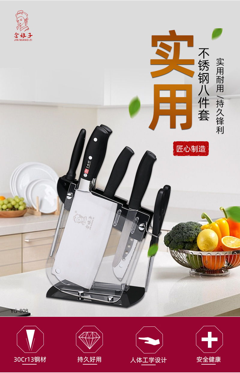 金の女性の8つのセットの家庭用キッチンセットの伝統的なセットの刃物セットの中国式の鋭利な台所用刃物
