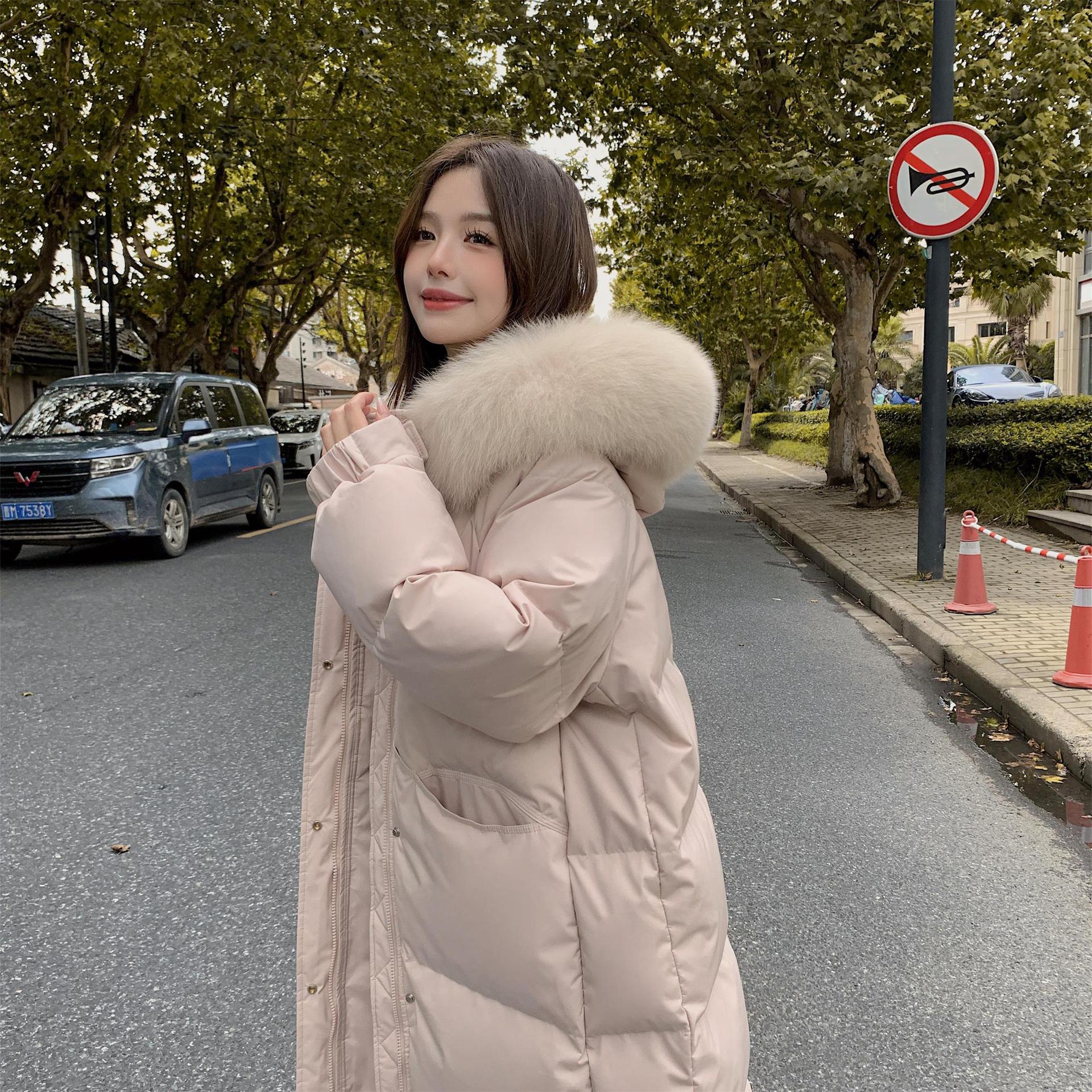 平湖羽绒服女中长款90%白鸭绒大毛领收腰显瘦新款小个子面包服女