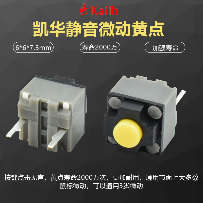 凱華kailh静音黄点微動スイッチ両足角型両足CMI1627301D134--2