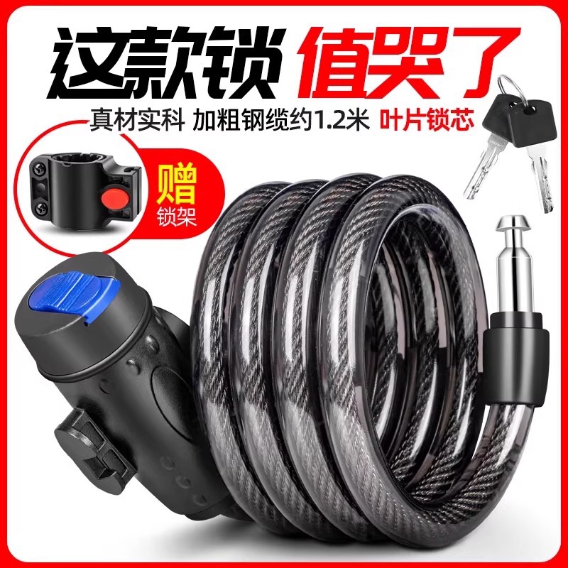 带锁架山地自行车锁防盗密码钢丝抗剪单车锁具链