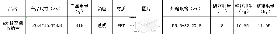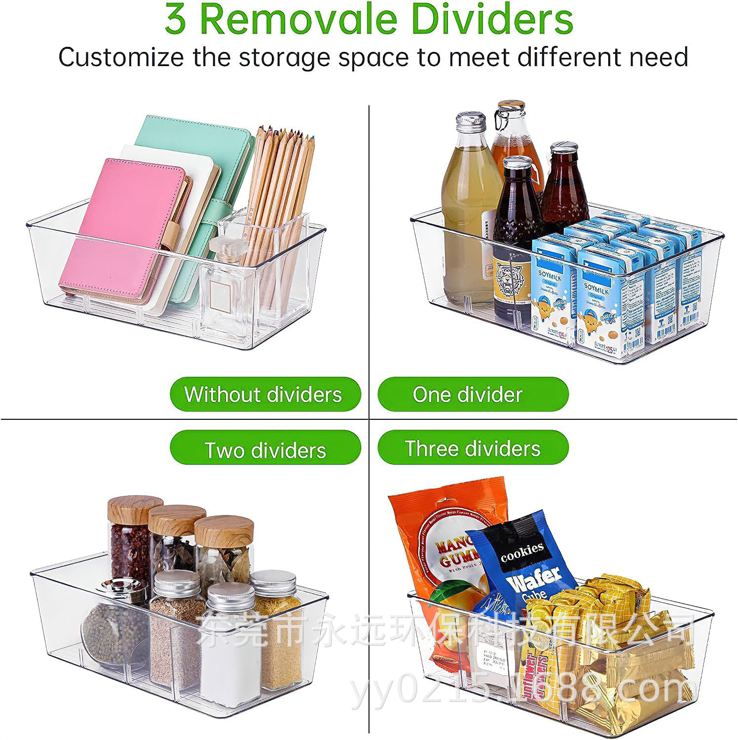 透明PET收纳盒收纳零食饮料调料杂物储物盒带分格可拆桌面整理盒