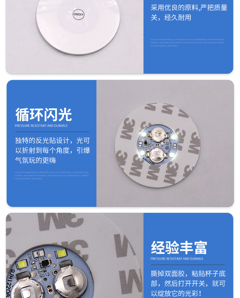 メーカー発光カップステッカー KTVパーティー飲料装飾 フラッシュカップマット 3M粘着ラウンドボトルステッカー サポーターLED