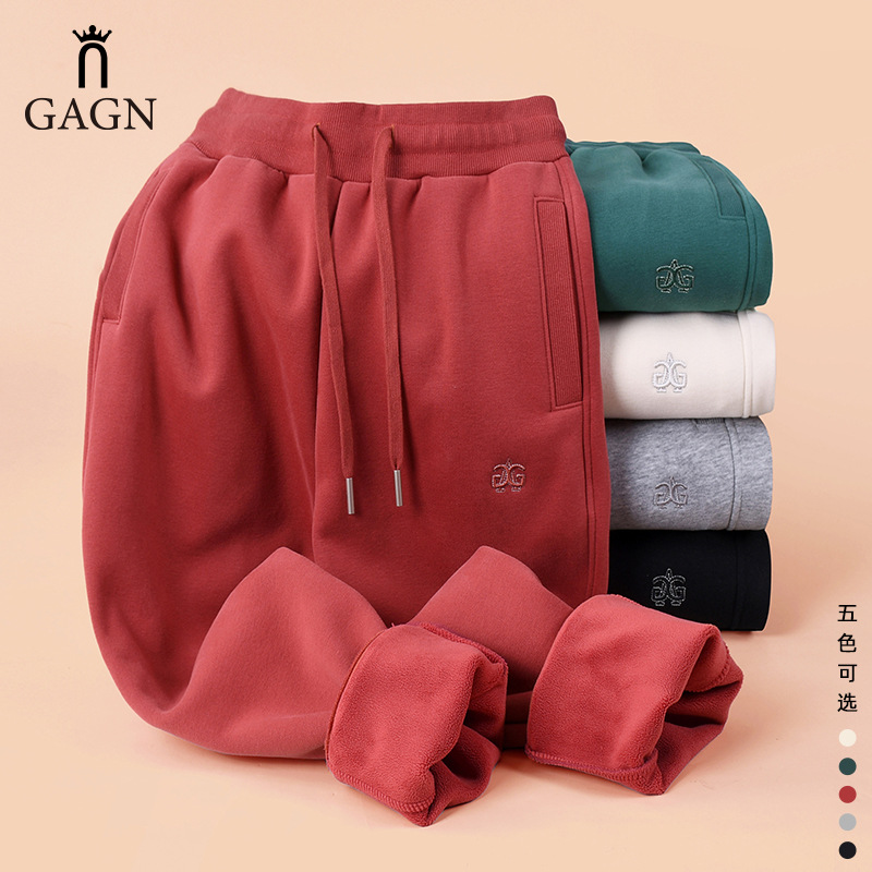 GAGN赤い冬のモデル2024の新しい女性のゆるいカジュアルなズボンのズボンの裾はやせているベルベットの保温ズボンを見せている