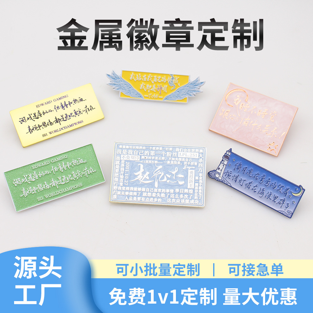 カスタマイズされた文化的で創造的なテキストの引用シリーズの金属バッジ、さまざまなスタイルのバッジ、IP 共同ブランド記念バッジ、カスタムメイドの卸売