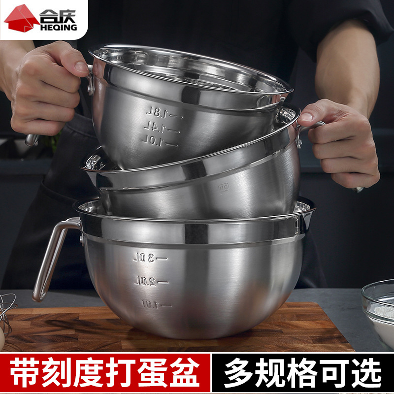 厚い304ステンレスのオムライスボウルはハンドルと洗面器付きの目盛り付きの焙煎攪拌料理サラダボウルを深めた