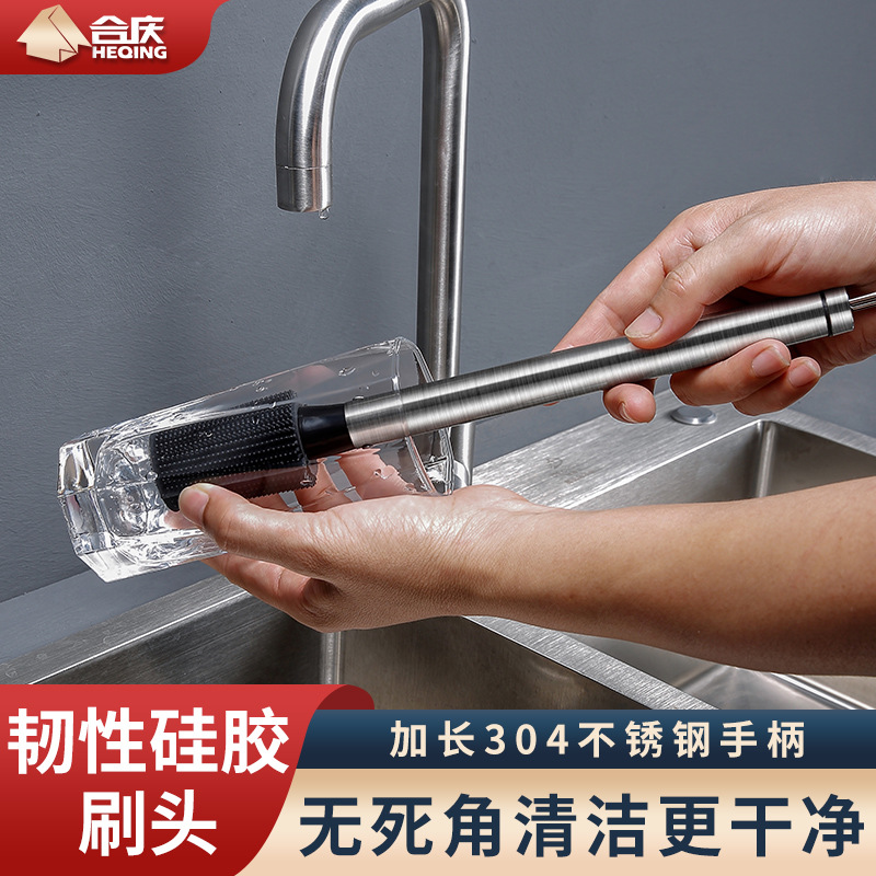 304 ステンレス鋼シリコンカップブラシ家庭用多機能ロングハンドル除染カップ洗浄アーティファクト壁破壊機ボトル洗浄ブラシ