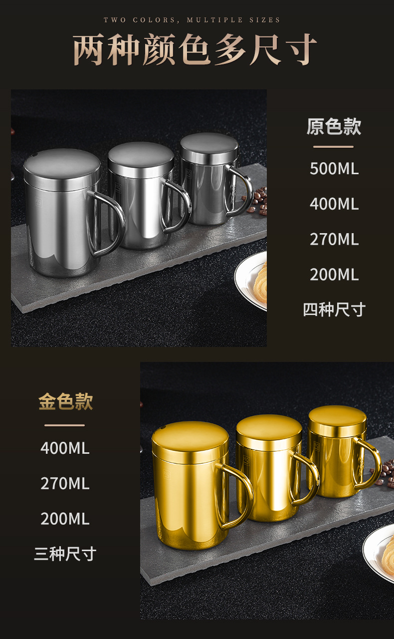 316ステンレスマグカップ軽贅沢高級感蓋付きコップ二重熱防止コーヒーカップ学生保温コップ