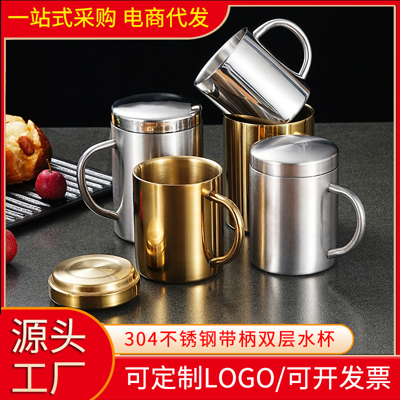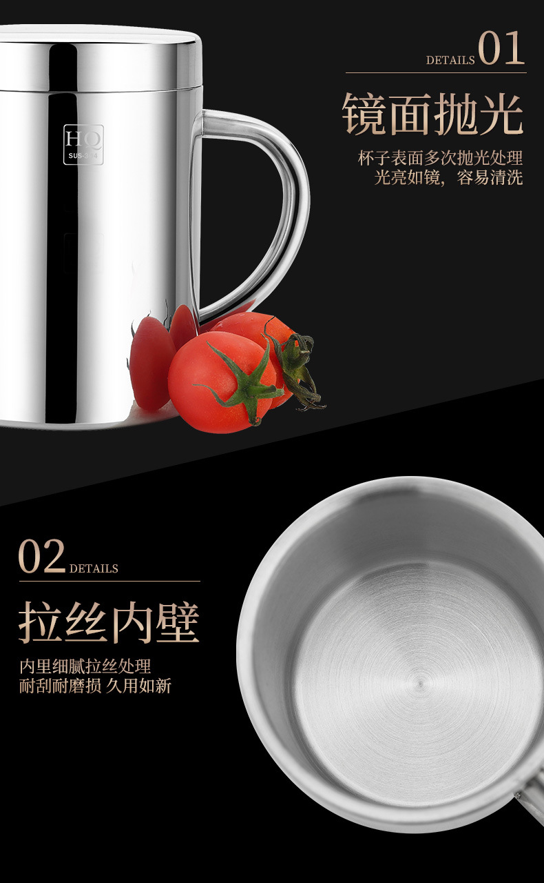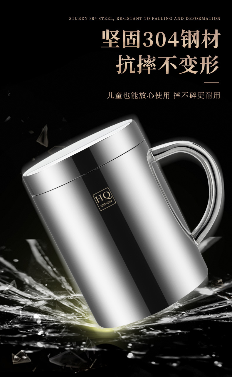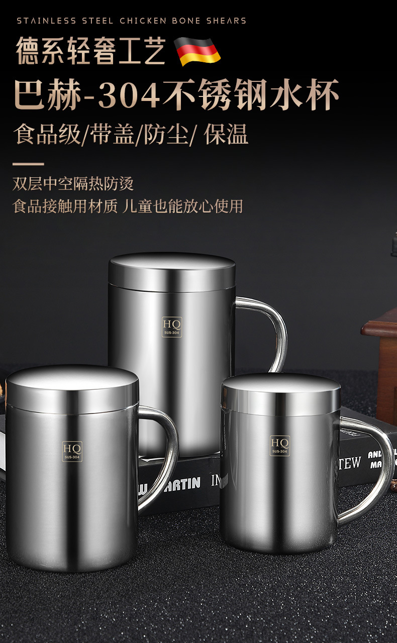 304ステンレスマグカップ厚い蓋付きカップオフィスコーヒーカップ二重断熱転倒防止子供カップ