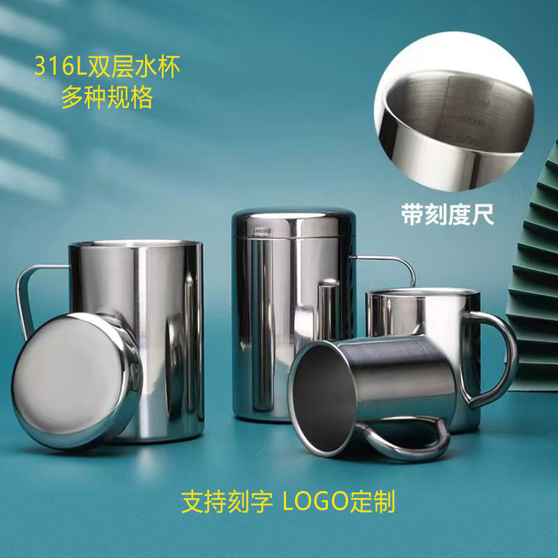 316ステンレスマグカップ家庭用二重断熱子供カップビジネスオフィス蓋付きコップ目盛り付き