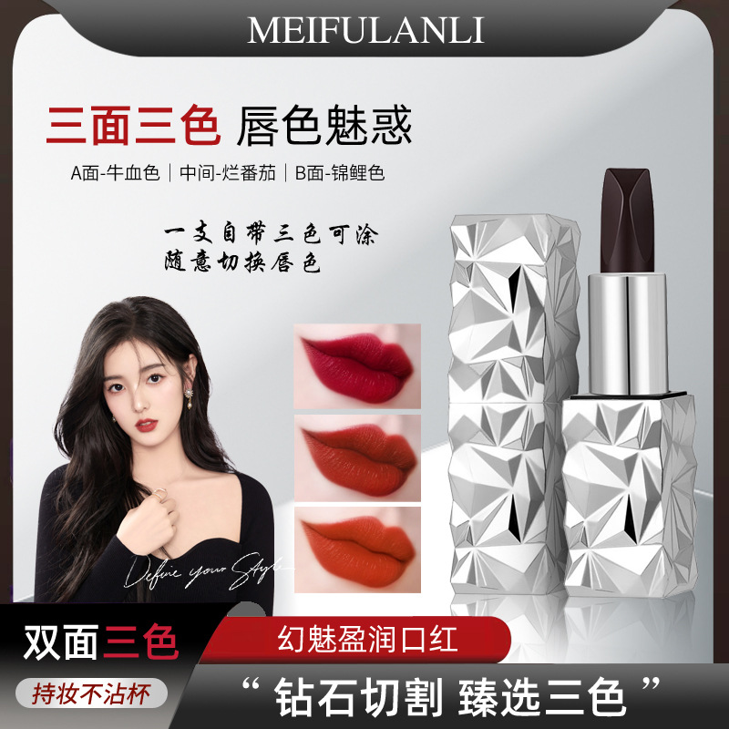 女王の黒ドリル三色の口紅はつや消しで、コップの化粧をつけないで、色を落とさない唇は防水の口紅のレインコートを保護します。