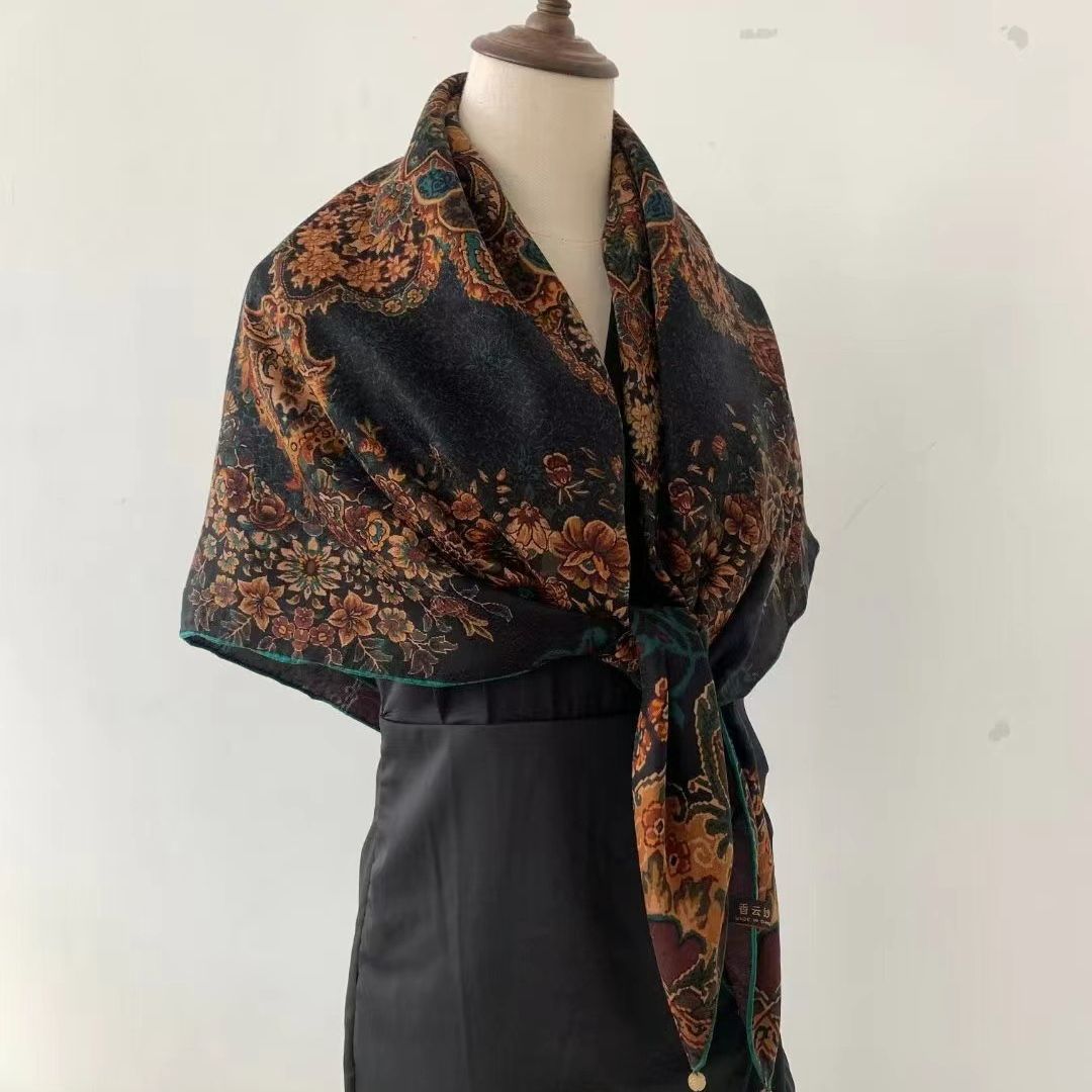 シルク大判スカーフ 桑蚕シルク ヴィンテージプリント スカーフ ギフト 多用途スカーフ 高級韓国風装飾