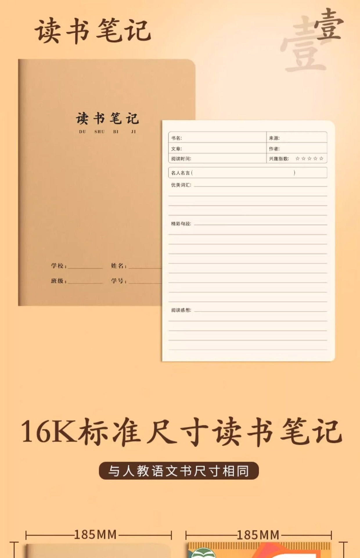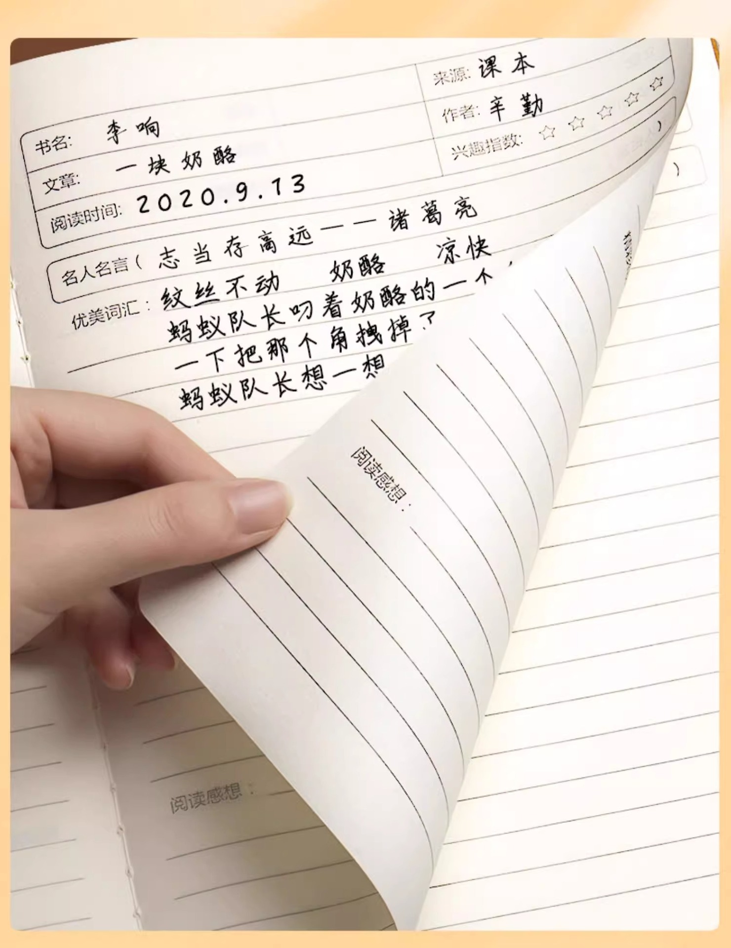 いい言葉と文章の抜粋 小学生の読書記録帳 中国語読書ノート 牛革紙の宿題帳