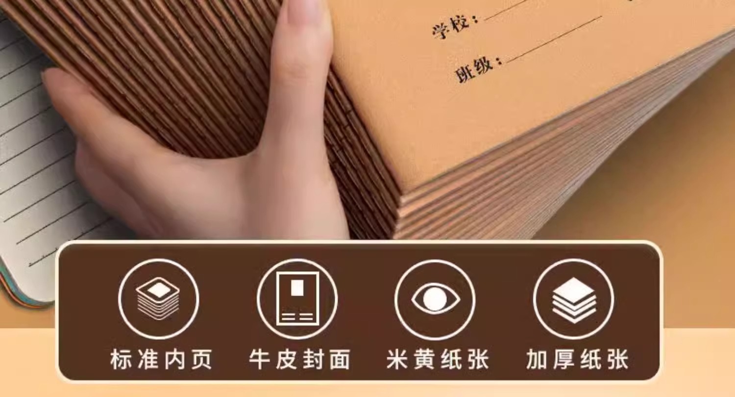 思進牛皮16k仕事帳卸売りノート国語数学科目本ピンイン作文書田字本