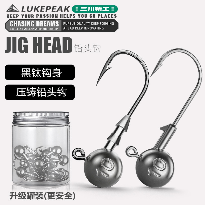 罐装铅头钩 路亚铅头钩软饵防挂底50枚鲈鳜鱼专用 血槽圆形钩鱼钩