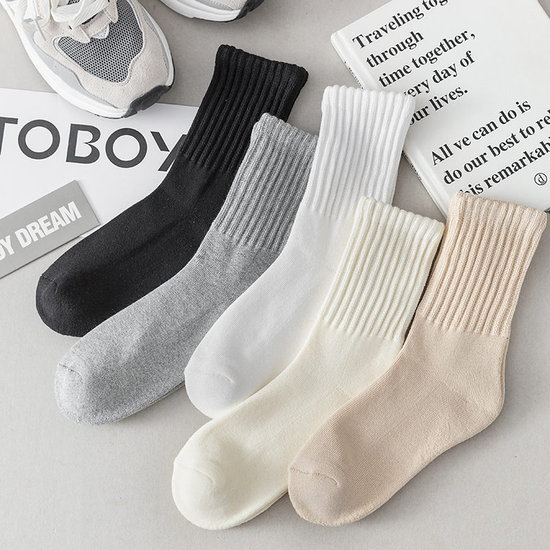 諸及び靴下カップルスポーツ靴下男女毛輪純綿厚手防臭中筒靴下秋冬純色タオル底靴下